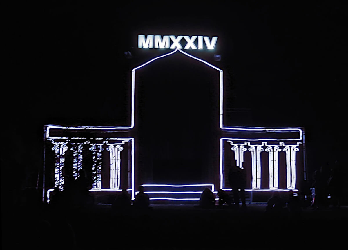 Pour célébrer le site en cette veille de Fête Nationale, avec Nicolas de ADN System nous avons décidé d’élargir le belvédère pour le mettre en valeur au moyen de structures en aluminium, d’un laser et de 30 bandes (rubans) LED de 5m contrôlés par un logiciel de mapping vidéo et organisés pour évoquer les arcades d’un palais antique. Nous avons également mis en lumière les vestiges du mur antique.