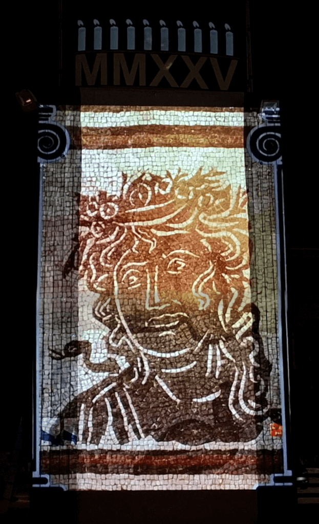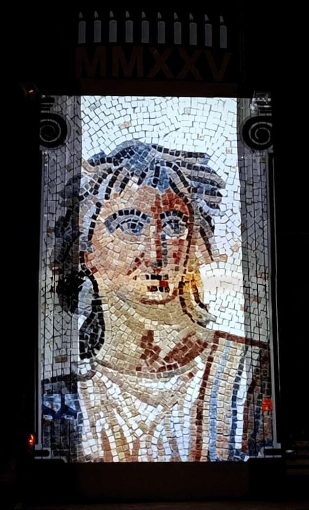 Soirée Antique 2025 - Les Tours Mirandes (86) - Vidéoprojection sur le 1er belvédère.